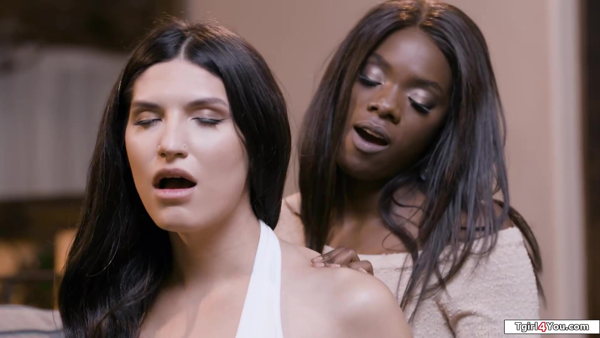 Ebony milf gf Ana Foxxx sucks latina tgirl Zariah Auras feet.The small tits shemale licks her hairy pussy and gets her big tranny dick deepthroated.Rock hard the trans bangs her black girlfriends snatch with her boner and lets her ride on it