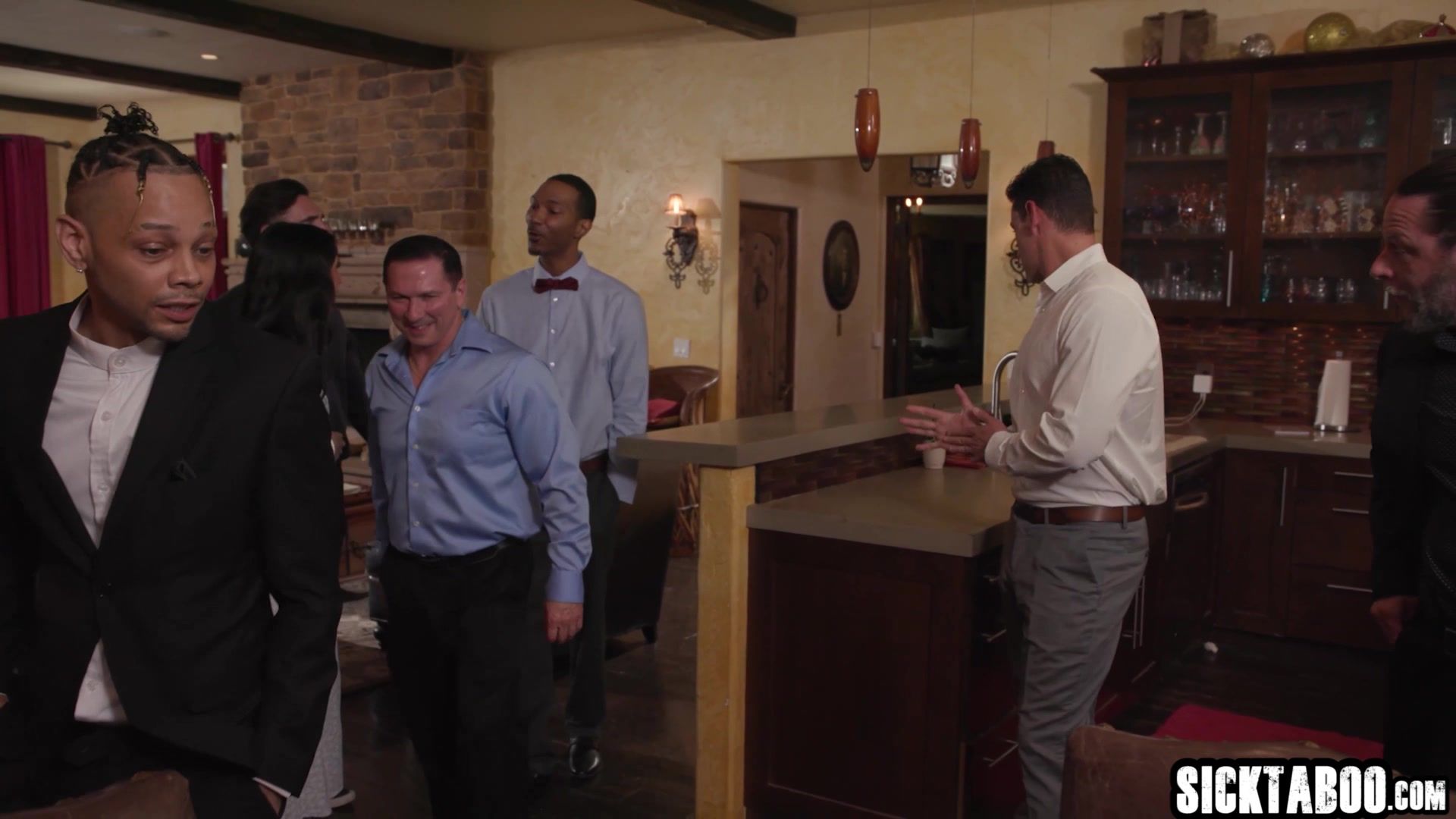 Hot big ass Latina babe Penelope Woods fucking in gangbang with husband and his friends so babe gave a blowjob and enjoyed rough anal sex Sexy big booty MILF swallowed big cock After deepthroat and blowbang MILF enjoyed double penetration and anal sex